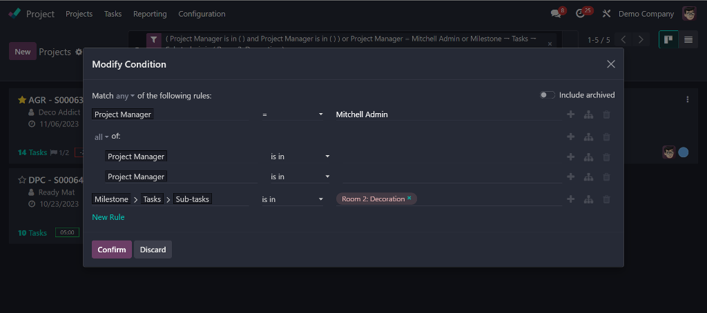 Let’s take the Project module as an example. In the new Odoo version, subtask progress can be updated and seen in Kanban mode. To do so, a checkbox under the main task will appear if you add a subtask. Click on it, and voila! You can see what subtasks are left to complete your work.